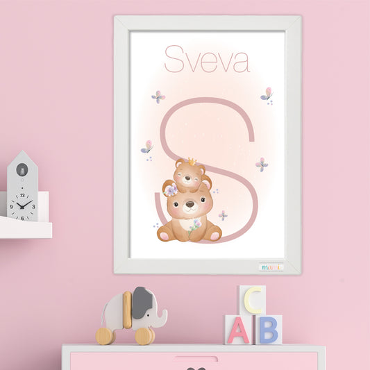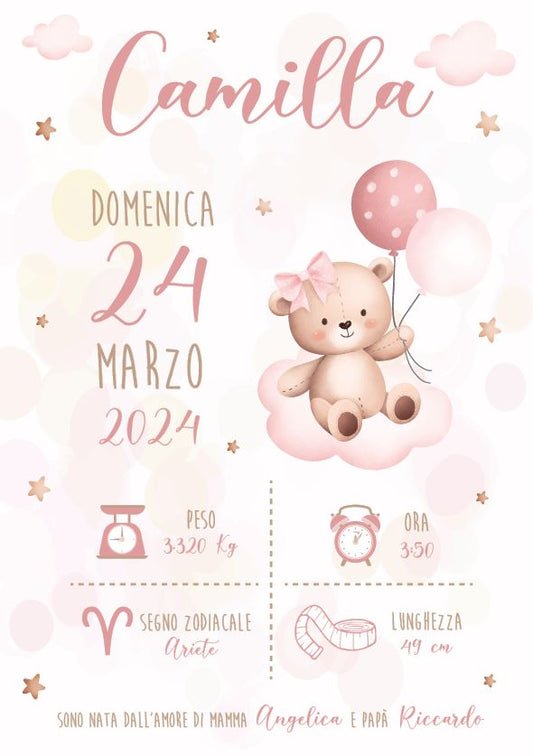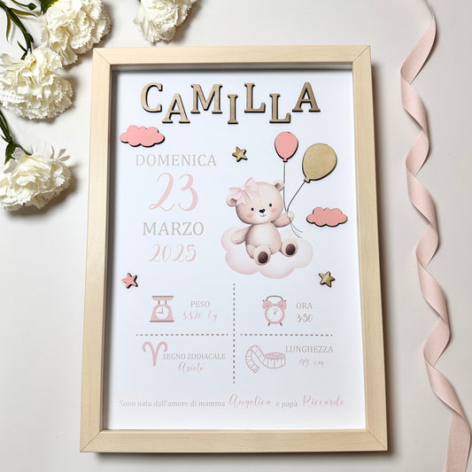 Orsetto con Palloncino - Quadretto Nascita Bimba