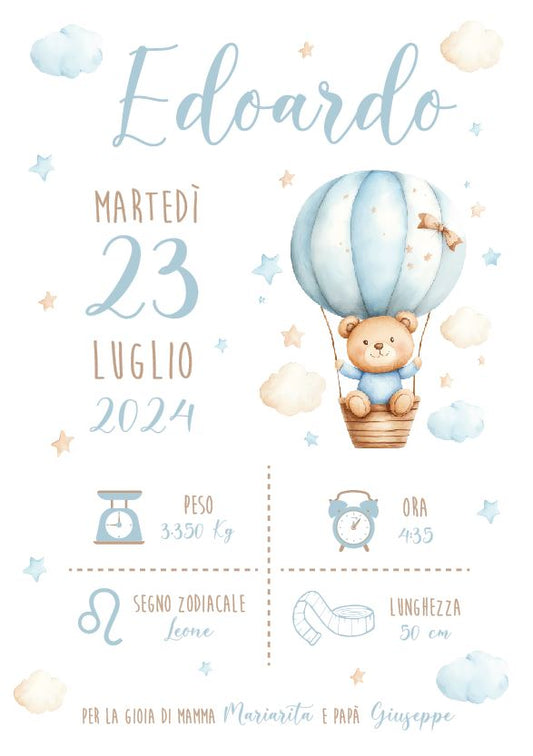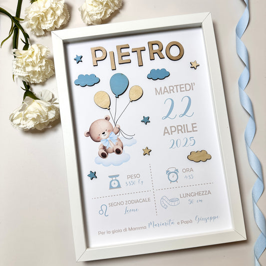 Orsetto su Mongolfiera - Quadretto Nascita Bimbo