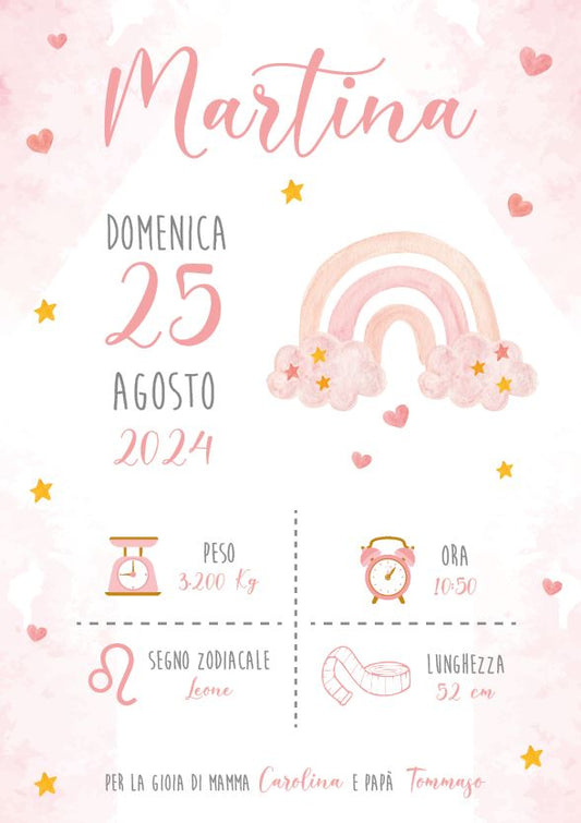 Arcobaleno Rosa - Quadretto Nascita Bimba