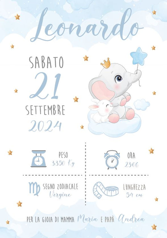 Elefantino e Palloncino - Quadretto Nascita Bimbo
