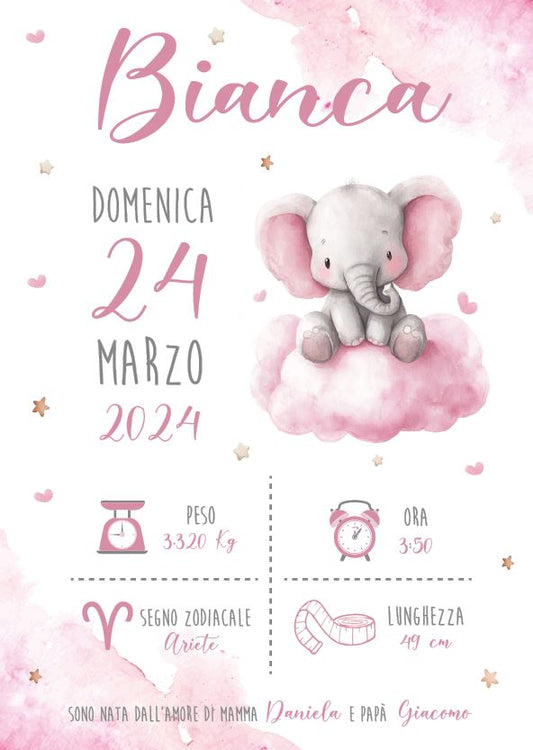 Elefantino su Nuvoletta - Quadretto Nascita Bimba