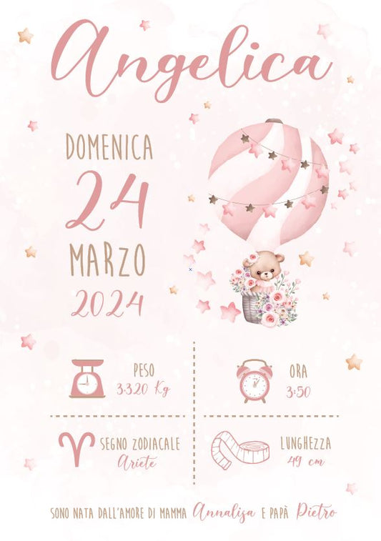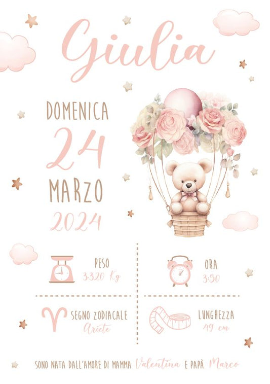 Orsetto su Mongolfiera - Quadretto Nascita Bimba